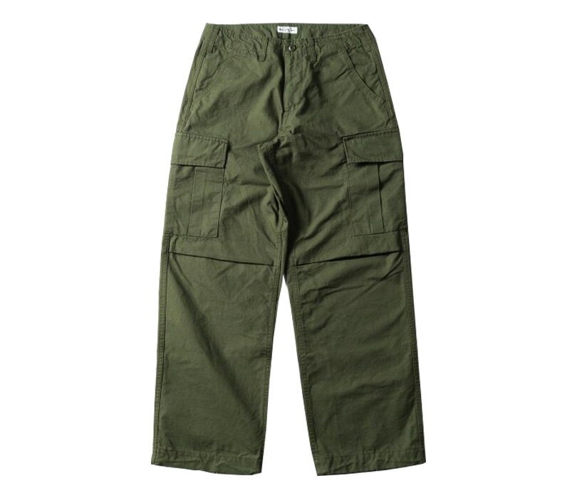 ジャパンブルージーンズ 「モダンミリタリーアーミーカーゴ」 生地 9.5oz Fatigueリップストップ 軽量ながら強度のある、リップストップ素材 高密度な平織りの生地に 太い糸を格子状に織り込んだもの しっかりとした肉厚のリップストップ生地で パリッとした高級感のある風合い。